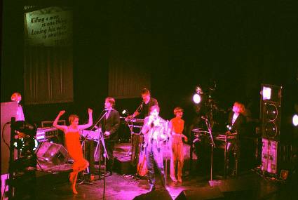 From this came the 'Dare' shaped screens and the whole rectangular look of the stage, the stark lighting at the start of the show, the Sound Of The Crowd projections of Thatcher era politicians and lots of other stuff. Hopefully we set the scene quite well.